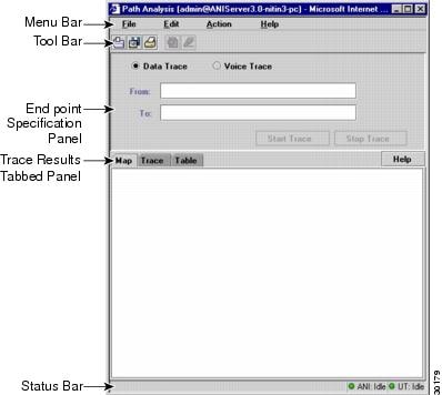 From the CiscoWorks2000 desktop, select Campus Manager > Path Analysis. The Path Analysis main window appears (see Figure 4-1). Refer to Table 4-1 for a description of the elements of the Path Analysis main window.