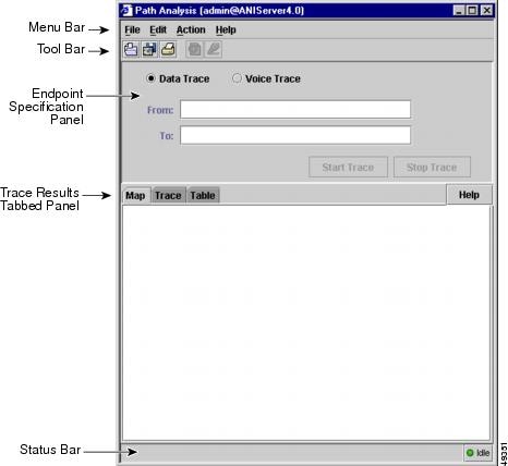 From the CiscoWorks2000 desktop, select Campus Manager > Path Analysis. The Path Analysis main window appears (see Figure 5-1). Refer to Table 5-1 for a description of the elements of the Path Analysis main window.