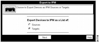 Select Import from CiscoWorks2000 > Import Devices. The Export to IPM window (Figure 5-36) is displayed.