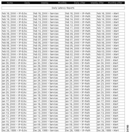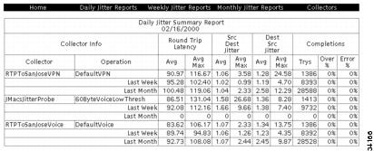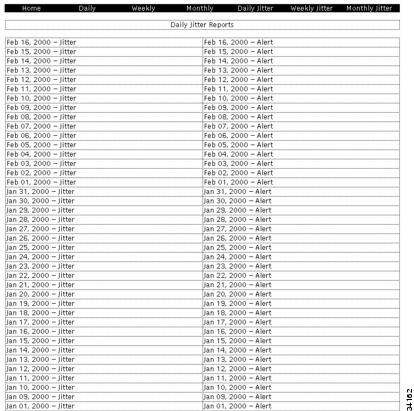 Jitter—To view daily jitter latency statistics for a specific date. The Daily Jitter Summary Report page (Figure 5-29) is displayed.