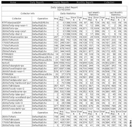 Alert—To view daily alert statistics. Alerts are collectors with errors. The Daily Latency Alert Report page (Figure 5-25) is displayed.