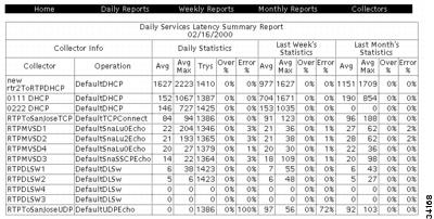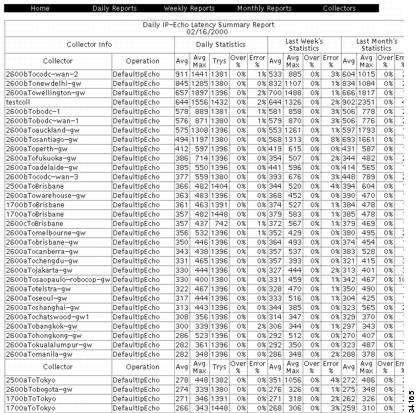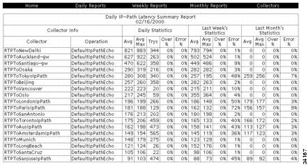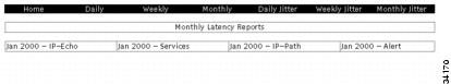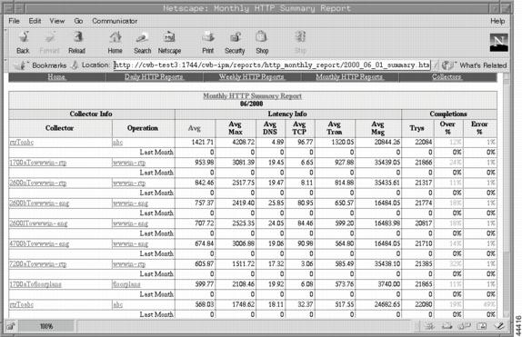 From either the CiscoWorks2000 desktop or the IPM Server Home Page, you can view a monthly summary of latency data for each collector on the IPM server.