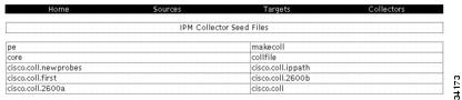 You can view the available IPM source, target, and collector seed files from either the CiscoWorks2000 desktop or the IPM Server Home Page. Also, you can view the contents of a selected seed file. The following sections provide details on the seed files you can view: