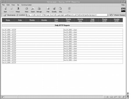 HTTP—To view daily HTTP statistics for a specific date. The Daily HTTP Summary Report page (Figure 5-33) is displayed.