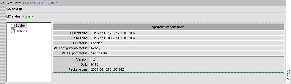 The Optimized Edge Routing (OER) Master Controller (MC) Home page appears (see Figure 2-2).