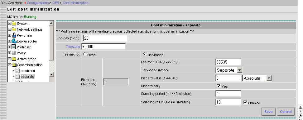 The Advanced configuration level allows you to use the Cisco OER Master Controller Engine to configure custom policies for optimization; including cost optimization for tier links.