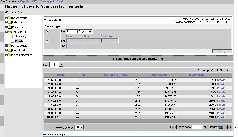 Figure 2-57 Reports > Throughput > Details From Passive Monitoring> Prefix Details
