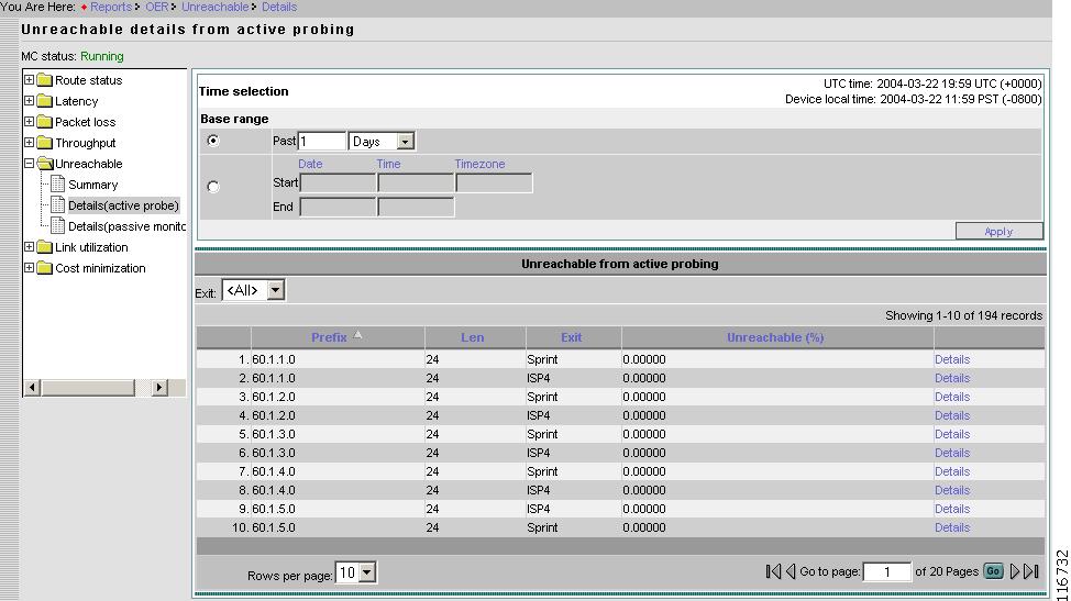 Figure 2-59 Reports > Unreachable > Details From Active Probe