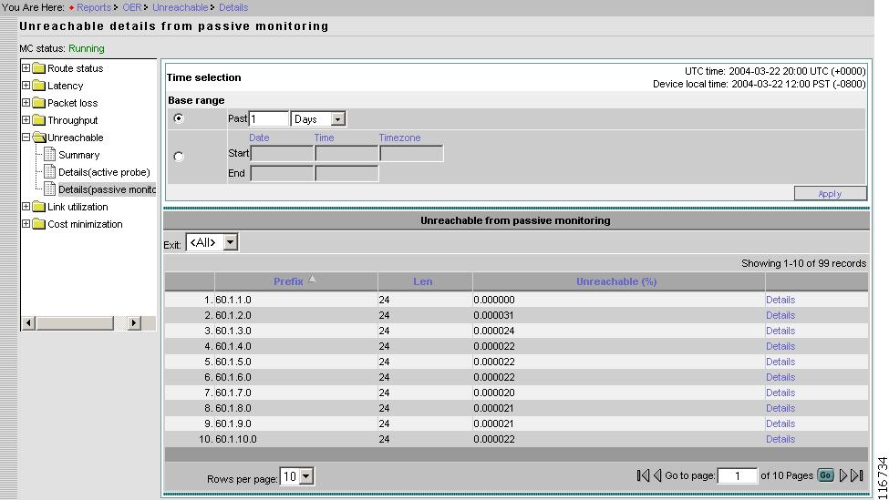 From the Unreachable details from passive monitoring page, select the probe of interest, then click Details.