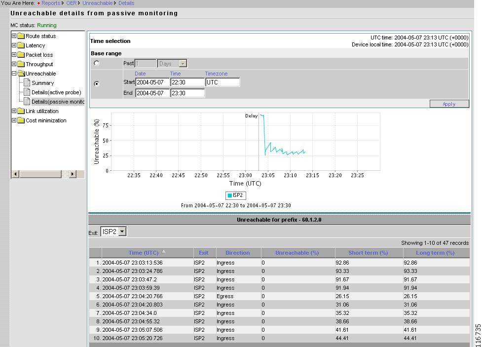 Figure 2-62 Reports > Unreachable > Details From Passive Monitoring > Prefix Detail