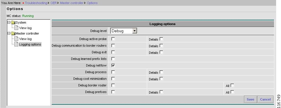 Figure 2-75 Troubleshooting > Master Controller > Logging Options