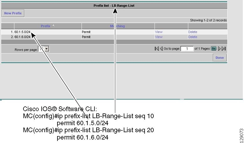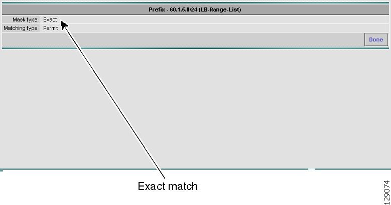 These sample Prefix List configurations show a Prefix List configuration (Figure 2-3) with an Exact Match (Figure 2-5) and one with Non-exact Match (Figure 2-5).