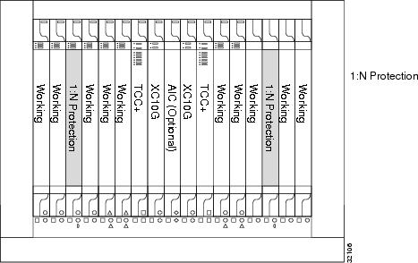 Figure 6-2 ONS 15454 Cards in a 1:N Protection Configuration