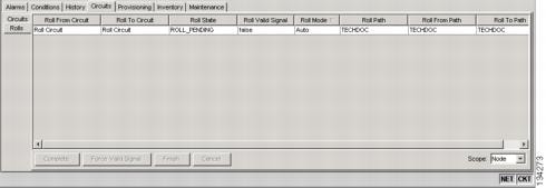 The Rolls window lists information about a rolled circuit before the roll process is complete. You can access the Rolls window by clicking the Circuits > Rolls tabs in either network or node view. Figure 7-5 shows the Rolls window.