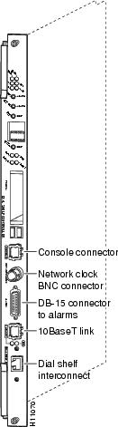 The dial shelf also contains a DSC card that provides clock and power control to the dial shelf cards. Each dial shelf controller card contains a block of logic referred to as the common logic and system clocks. This block generates the backplane Stratum-4 compliant 4-MHz and 8-KHz clocks used for interface timing and for the TDM bus data movement. The common logic can use a variety of sources to generate the system timing, including an E1 or T1 input signal from the BNC connector on the dial shelf controller card front panel. The clock source can also be telco office timing units (BITS clocking) extracted from the network ingress interfaces.