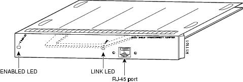 The dial shelf interconnect port adapter contains two LEDs: an enabled LED and a link status LED, shown in . After system initialization, the enabled LED lights to indicate that the dial shelf interconnect port adapter has been enabled for operation.