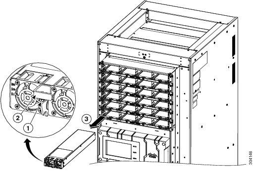 Ensure the power tray you are about to install is empty. It is not necessary to turn off the switch on the power tray to remove individual power modules. Power modules support OIR, so they can be removed and replaced with the power on and the system operating.