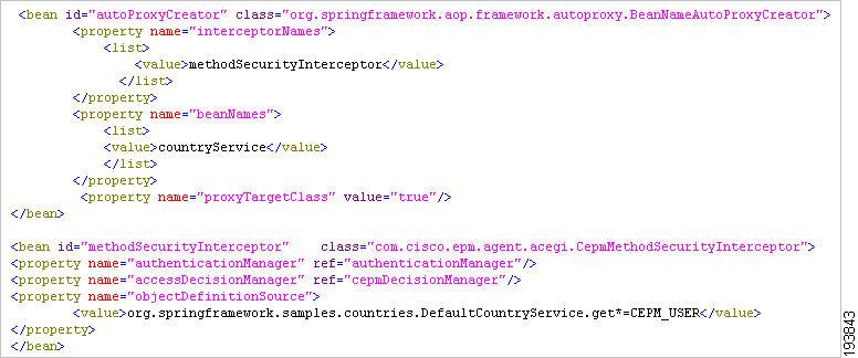 <bean id="cepmDecisionManager" class="com.cisco.epm.agent.acegi.CepmDecisionManager"><property name="resourceManager"><bean class="com.cisco.epm.agent.acegi.CepmSecurityResourceManager"/></property></bean>Step 7
