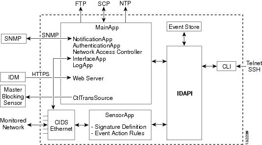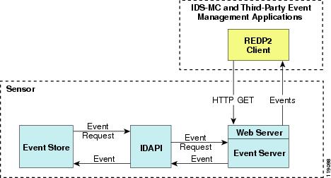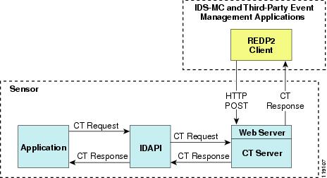 All IPS applications communicate with each other through a common API called IDAPI. Remote applications (other sensors, management applications, and third-party software) communicate with sensors through RDEP2 and SDEE protocols.