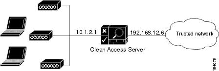 • All traffic originating from managed clients appears on the trusted side as originating from the Clean Access Server. |