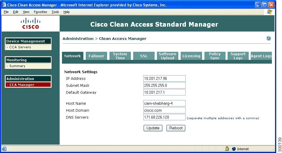 While the secondary CAS reboots, the primary CAS becomes active in the Clean Access Manager and displays the new settings.