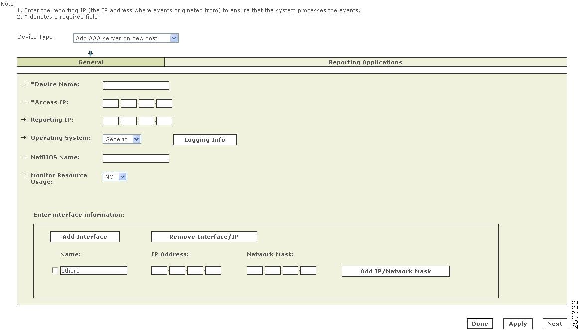 Click Add in the AAA Server Configuration box. The Add Reporting Device page appears, as shown in Figure 3-3.