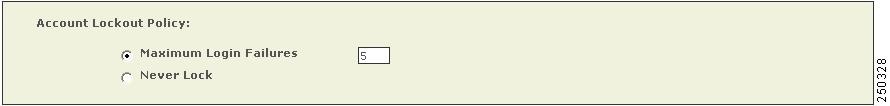 The maximum number of password attempts before locking is set by the Maximum Login Failures parameter in the Account Lockout Policy box of the AAA configuration page