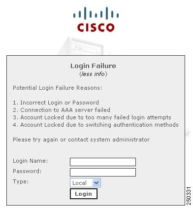 A login failure to the MARS GUI is signaled by the Login Failure message, as shown in Figure 3-12.