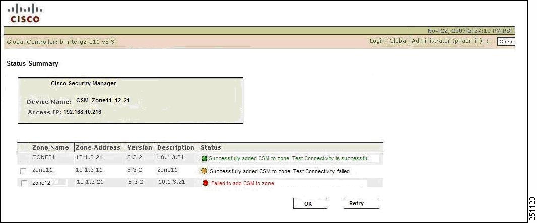 If authentication fails, MARS displays an error message in a popup window. On successful authentication, MARS requests the device ID from Security Manager by providing the hostname and IP address.