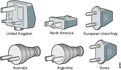 AC-input power supply power cords are available in five different plug styles. Make sure that you use the correct style for your location (Figure 1 and Table 2).