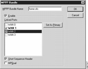 This dialog box (Figure 10-12) is used to configure Multilink PPP (MPPP) parameters for multiple WAN interfaces. MPPP allows multiple physical links to be combined into a "bundle" which provides a virtual link with greater bandwidth than a single link