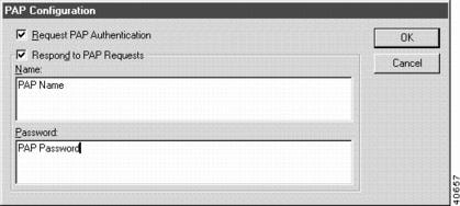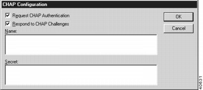 If there is a Compatible Systems router at the far end, these strings correspond to the Password entered in the PAP Configuration dialog box and/or the Secret entered in the CHAP Configuration dialog box.