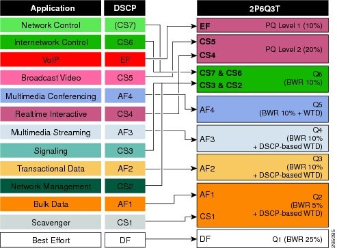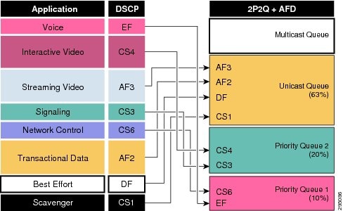 Wired ports can be configured with either a 1P7Q3T or 2P6Q3T egress queuing model. The only difference between the two models is whether a second priority queue is configured via the priority level 2 policy-map action command.