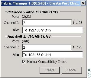 To create a PortChannel from Fabric Manager, right-click two or more Inter-Switch Links (ISLs) and select PortChannel from the pop-up menu. You see the dialog box shown in Figure 7-6.