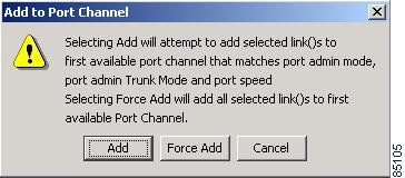 To force the addition of the link to a PortChannel, regardless of the port attributes, click the ForceAdd button.