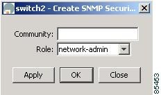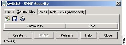 To configure users and communities from the Device Manager, choose SNMP from the Security menu. and click the Communities tab. To configure users and communities from the Fabric Manager, choose