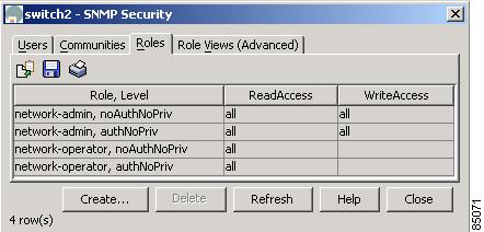 To configure users roles, choose SNMP from the Device Manager Security menu, and click the Roles tab. See Figure 5-5.