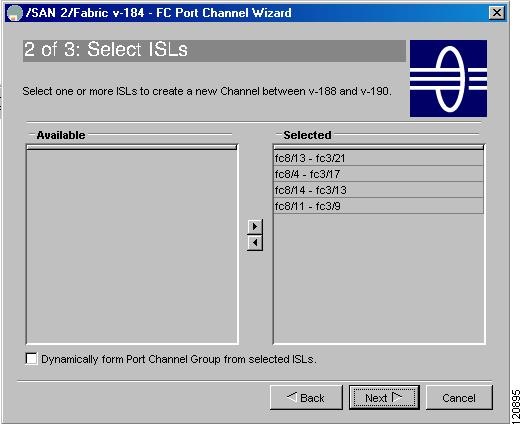 Optionally, check the Dynamically form Port Channel Group from selected ISLs check box if you want to dynamically create the PortChannel and make the ISL properties identical for Admin, Trunk, Speed, and VSAN attributes.