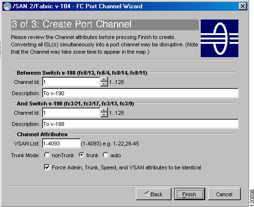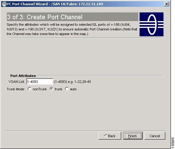 If you chose to dynamically form a portChannel from selected ISLs, you see the the final PortChannel Wizard screen as shown in Figure 17-4. Set the VSAN List and TrunkMode and proceed to Step 11.
