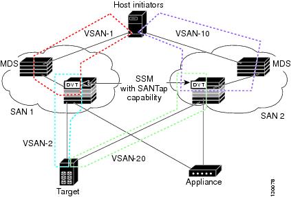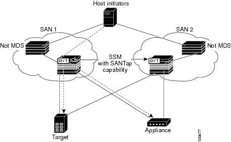 The Storage Services Module (SSM) supports Intelligent Storage Services in Cisco MDS SAN-OS Release 2.1(1a) and later that include SANTap.