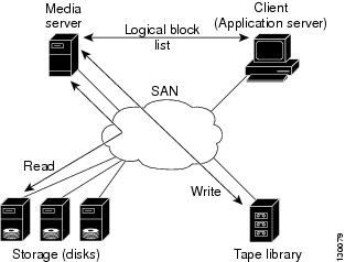 An example configuration is shown in Figure 41-1. The media server moves the data directly between the storage disks and the tape devices during backups.