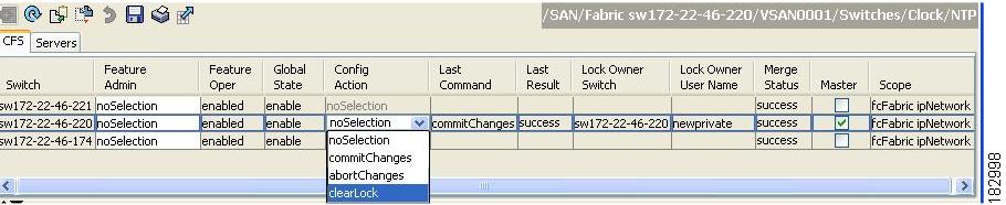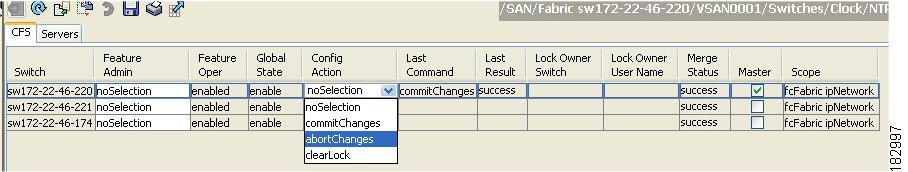 Select abortChanges from the Config Action drop-down list for each switch that you enabled for CFS (see Figure 13-15).
