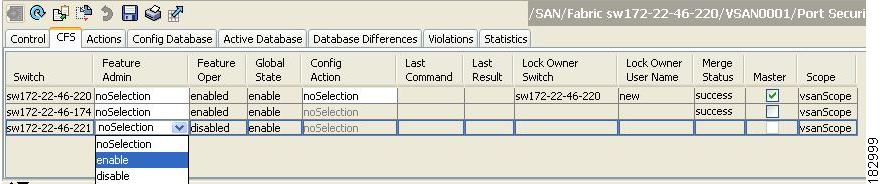 Step 1	 Select the CFS-capable feature you want to configure. For example, expand a VSAN, and then select Port Security in the Logical Domains pane.