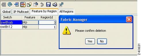 This action removes all entries pertaining to that switch and region in the table under Feature by Region tab.