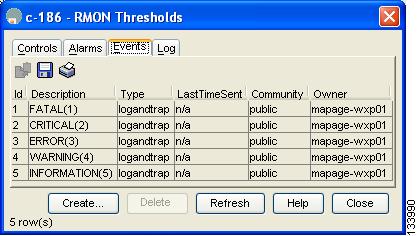 You see the RMON Thresholds Events tab (see Figure 61-6).