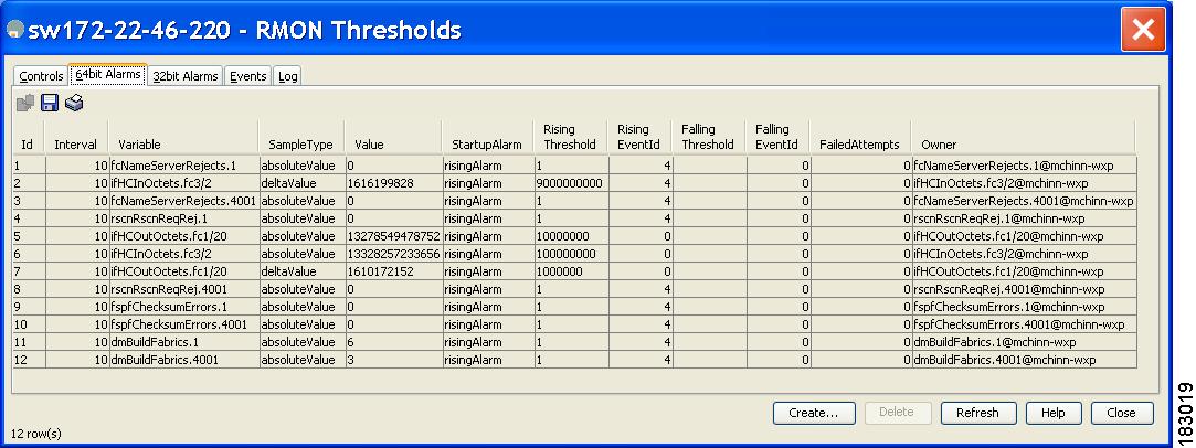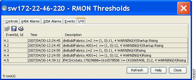 You see the RMON Thresholds Log tab (see Figure 61-9). This is the log of RMON events that have been triggered by the Threshold Manager.