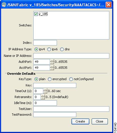 Choose enable from the Admin drop-down list for all switches that you want to enable CFS on for TACACS+.