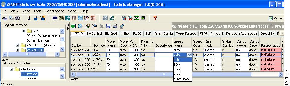 Expand Switches, expand Interfaces and select FC Physical in the Physical Attributes pane.
