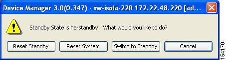 To manually initiate a switchover from an active supervisor module to a standby supervisor module, reset the active supervisor module using Device Manager. Once the switchover process has started, another switchover process cannot be started on the same switch until a stable standby supervisor module is available.
