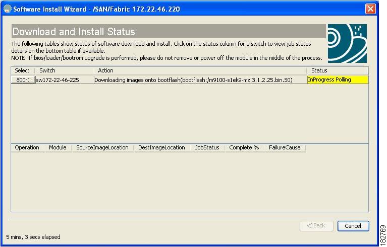 Each IPS module in a switch requires a 5-minute delay before the next IPS module is upgraded. See Chapter 44, "Configuring IP Storage" for more information on IPS modules.